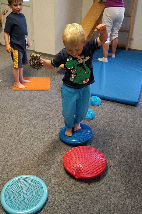 mit anderen gleichaltrigen Kindern. Dabei wird gezielt die Entwicklung der Kinder (Körperkoordination, Körperwahrnehmung, Gleichgewicht)
